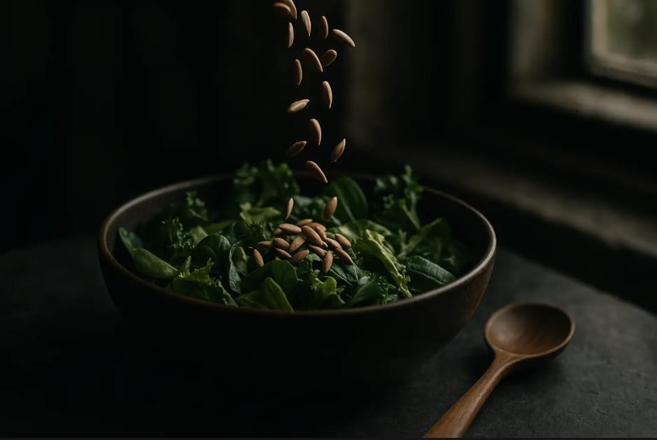 Mineral Absorption: Add seeds to leafy green salads; the healthy fats help your body absorb the Vitamin K in the greens.